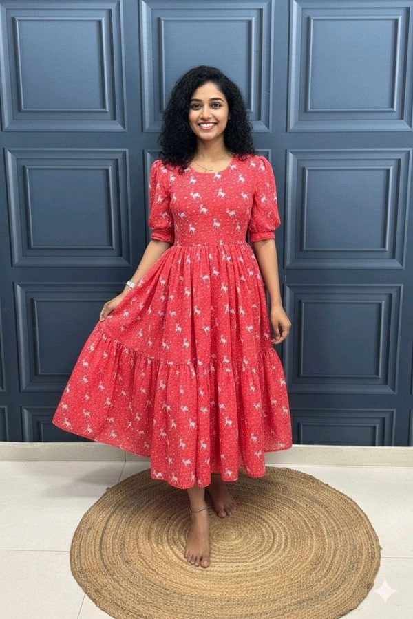 This Christmas Special Printed Hakoba Maxi Dress is crafted from soft Hakoba cotton with a beautiful festive print. It comes with full lining for premium comfort and flow. Perfect for Christmas brunches, family gatherings, outings, and beach days.