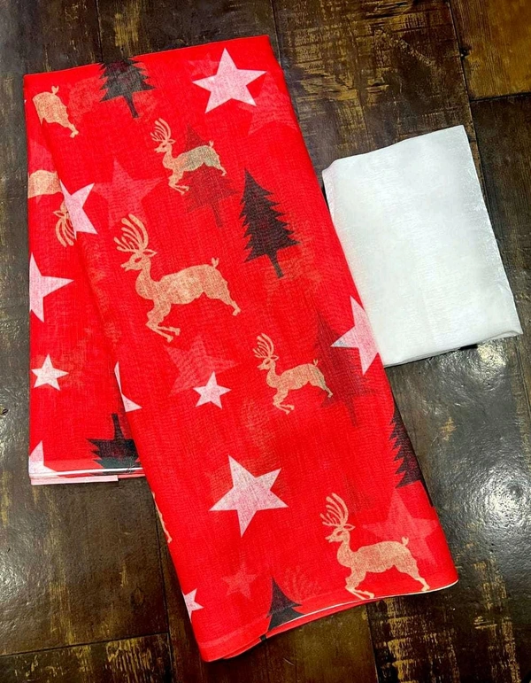 Linen Saree (Christmas Theme)